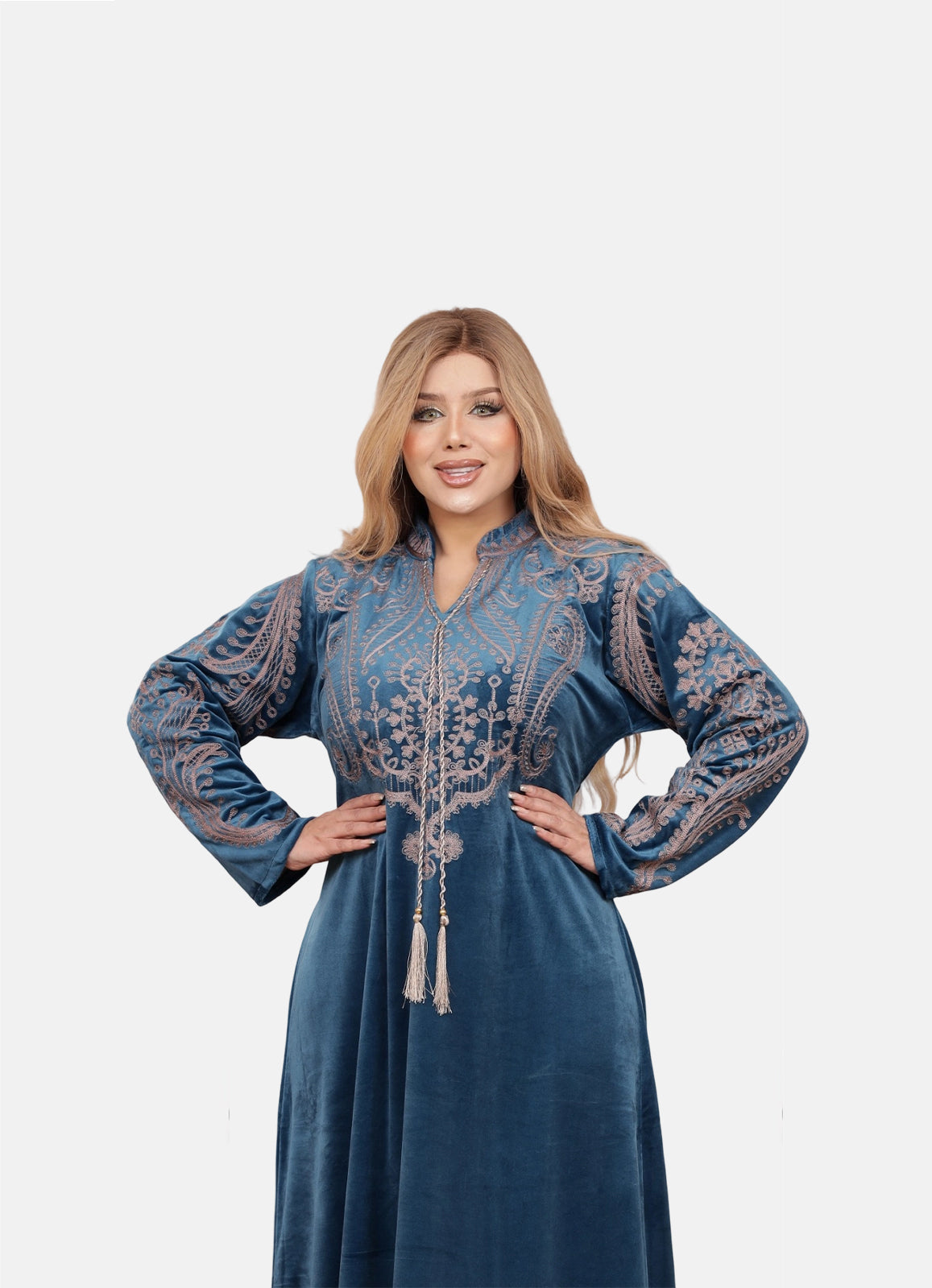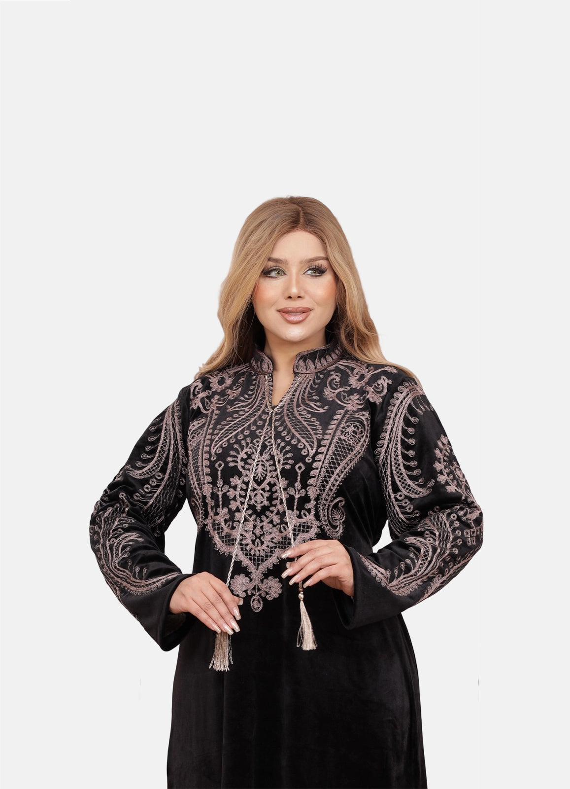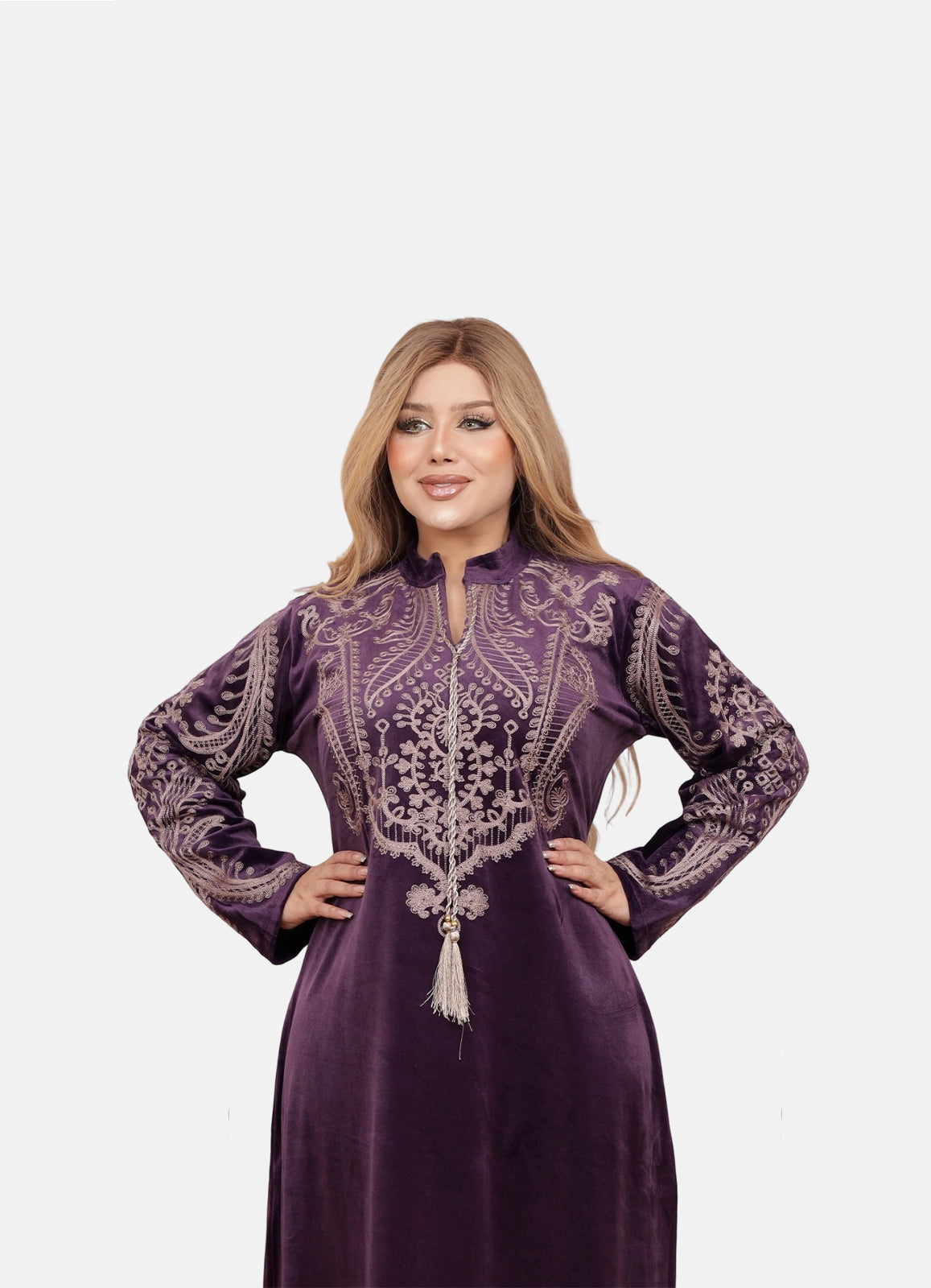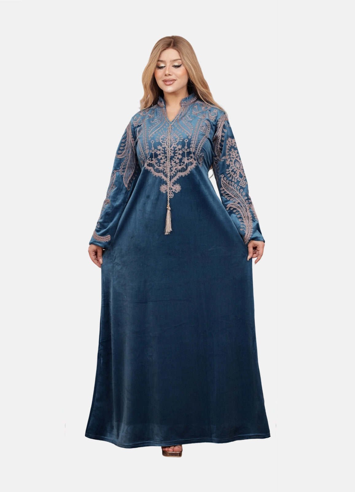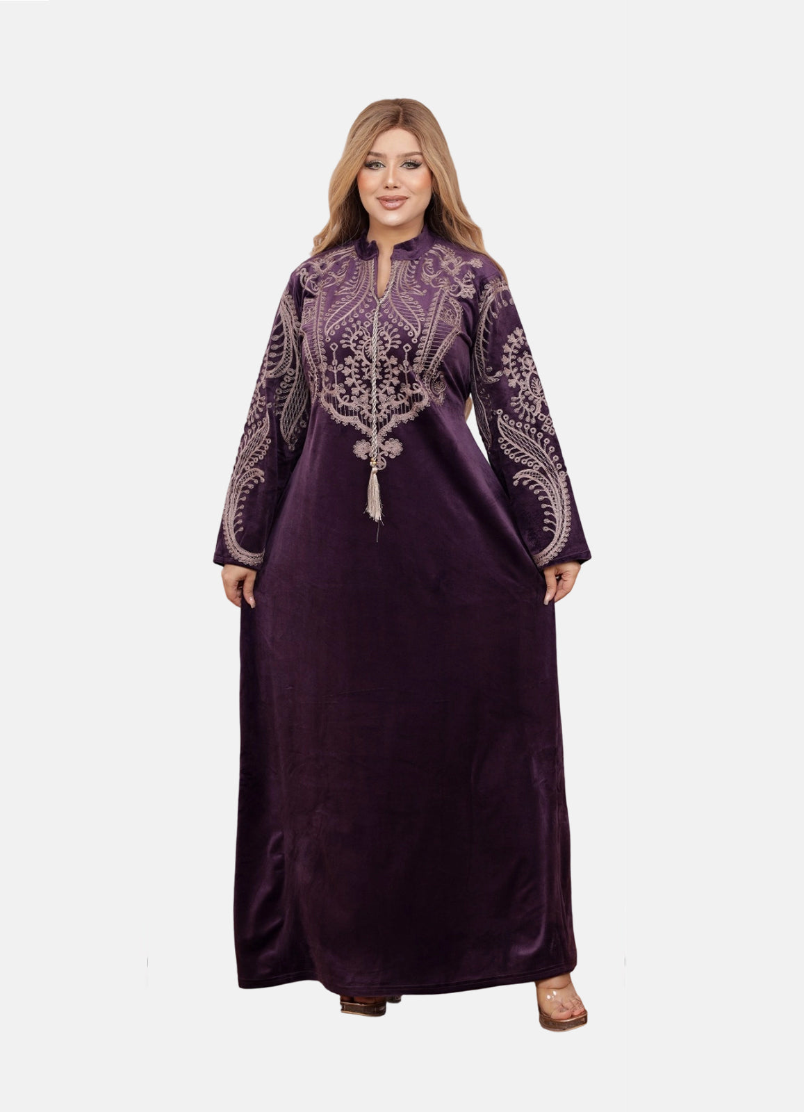 جلابية استقبال راقية بخامة قطيفة هايدي الفاخرة، ناعمة على البشرة وتمنحك لمسة دفء وأناقة بنفس الوقت