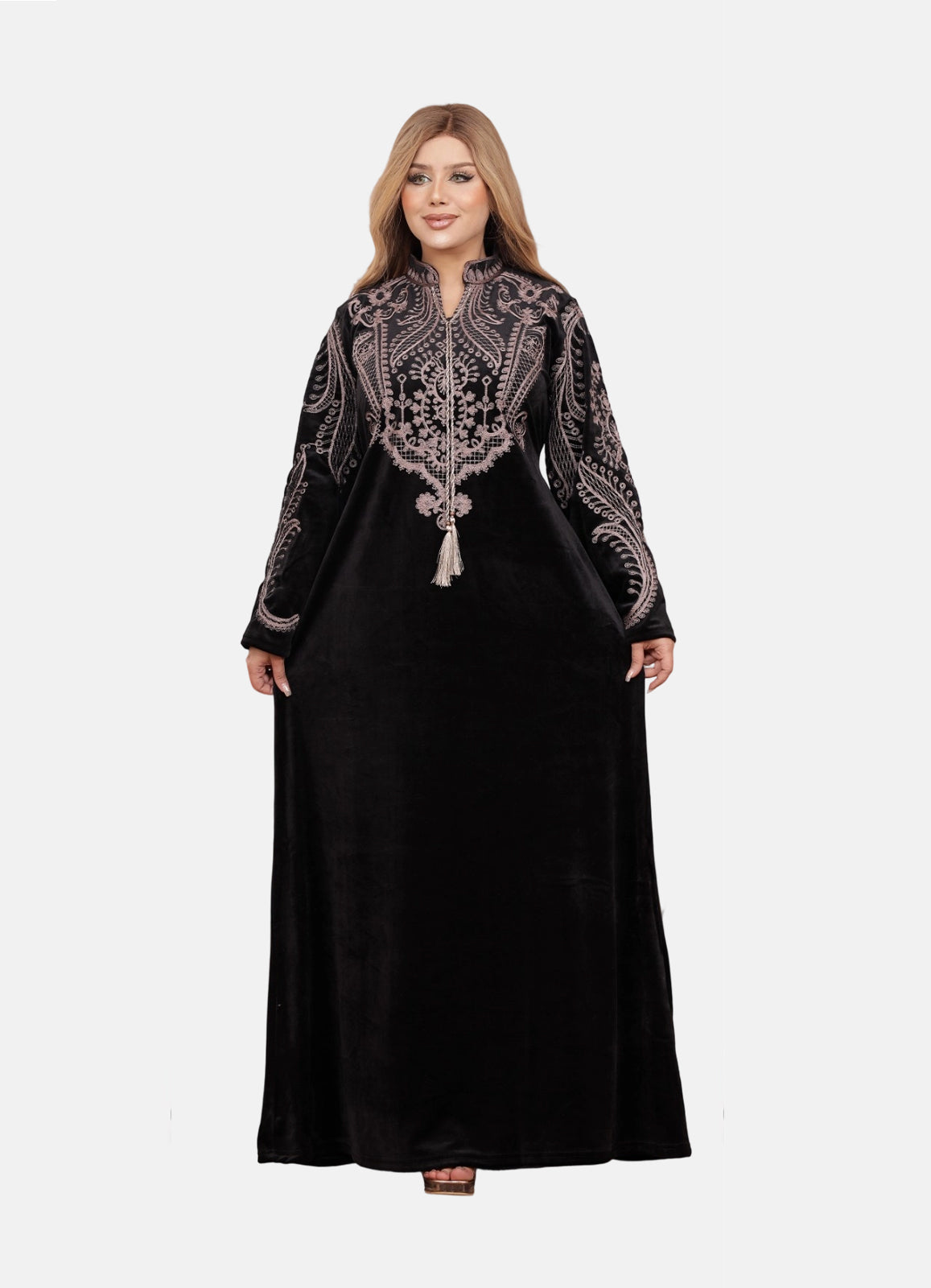 جلابية استقبال راقية بخامة قطيفة هايدي الفاخرة، ناعمة على البشرة وتمنحك لمسة دفء وأناقة بنفس الوقتتصميم عملى...