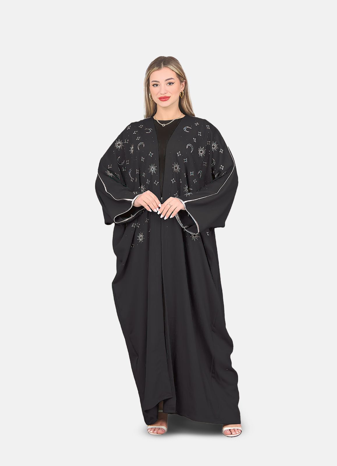 عباية كتان مفتوحة بتطريز فضـــى ... وقار وفخامة فى كل تفصيلة