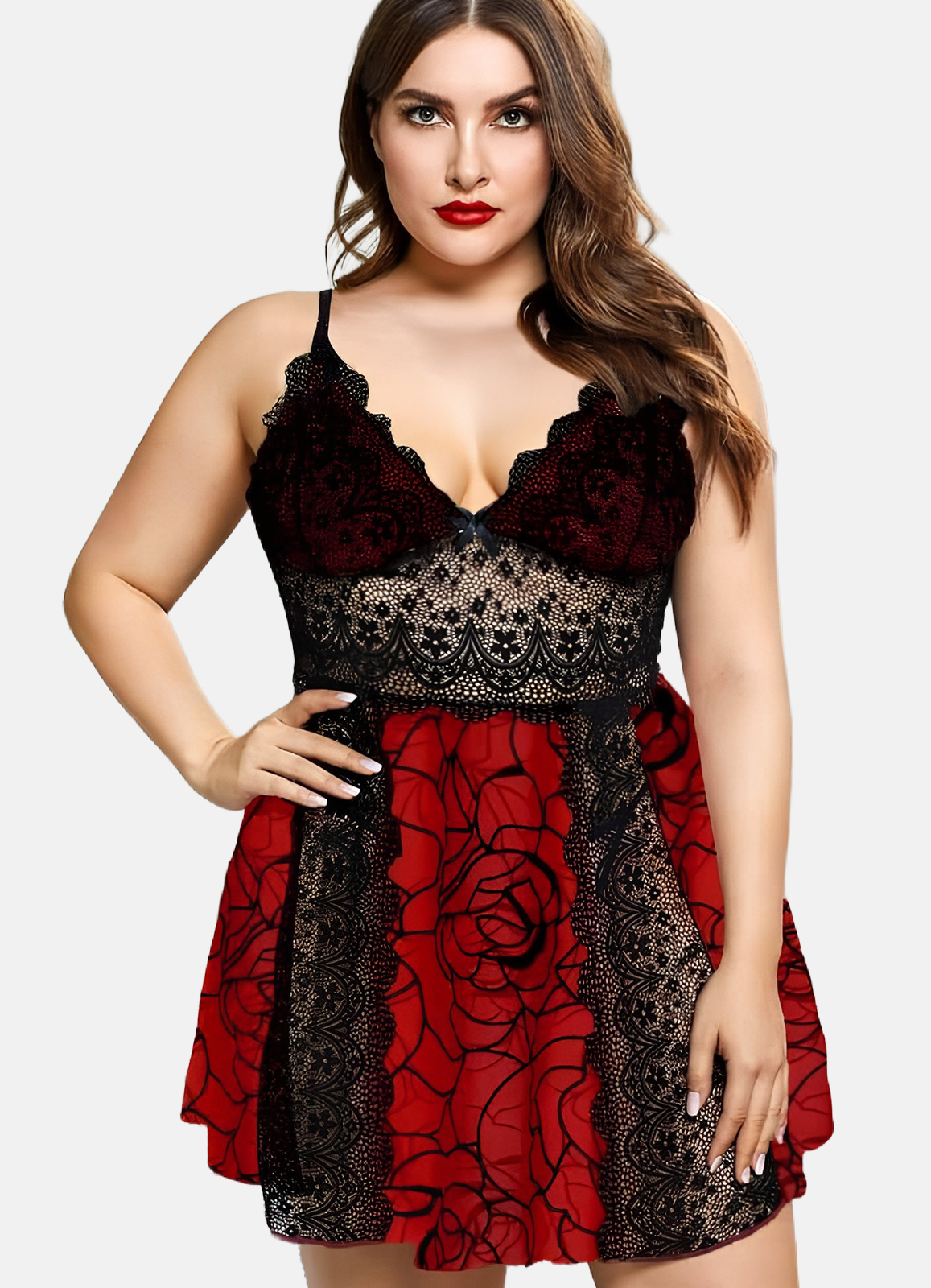 استمتعي بالفخامة والإثارة مع ملابس اللانجيرى ذات خامة الدانتيل والمزيج بين اللونين الأحمر والأسود لتزيد القطعة أناقة تناسب خزانتك